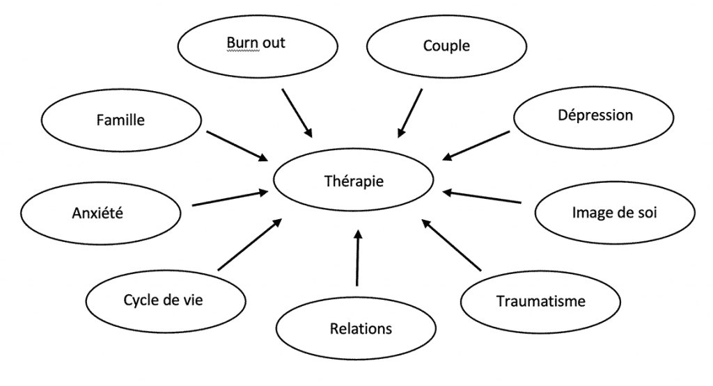 L’approche systémique appréhende l’individu dans toute sa complexité ainsi que son appartenance à une famille, une culture, une société, un environnement dans un temps de l’histoire. J’accompagne et m’intéresse aux patient.e.s dans leur appartenance familiale, conjugale, amicale, professionnelle, thérapeutique, ce dernier dans lequel je m’inscris également.